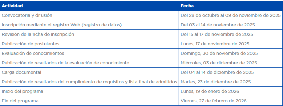Si el postulante cumple con los requisitos antes mencionados debe seguir los pasos de postulación y registrarse del 3 al 14 de noviembre de 2025
