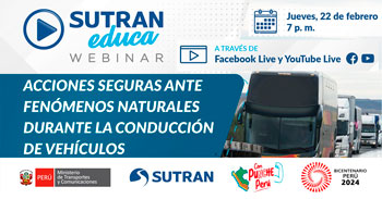 Prepárate para un nuevo Sutran Webinar donde hablaremos sobre los retos y desafíos del transporte sostenible en el Perú....