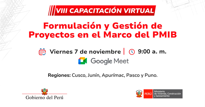 Capacitación virtual de “Formulación y Gestión de Proyectos en el Marco de PMIB” del Ministerio de Vivienda Perú