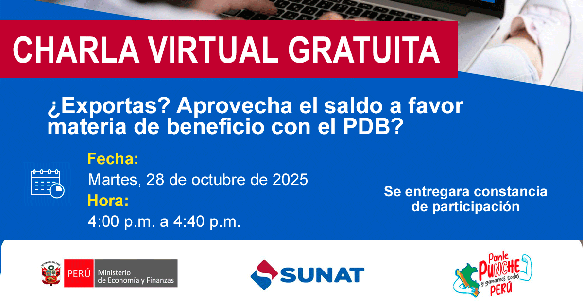 Charla virtual gratuita "¿Exportas? Aprovecha tu saldo a favor con el PDB" de la SUNAT