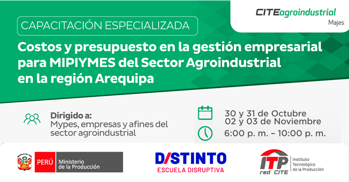 Capacitación virtual "Costos y Presupuesto en la Gestión Empresarial para MIPYMES del Sector Agroindustrial" del CITE Agroindustrial Majes