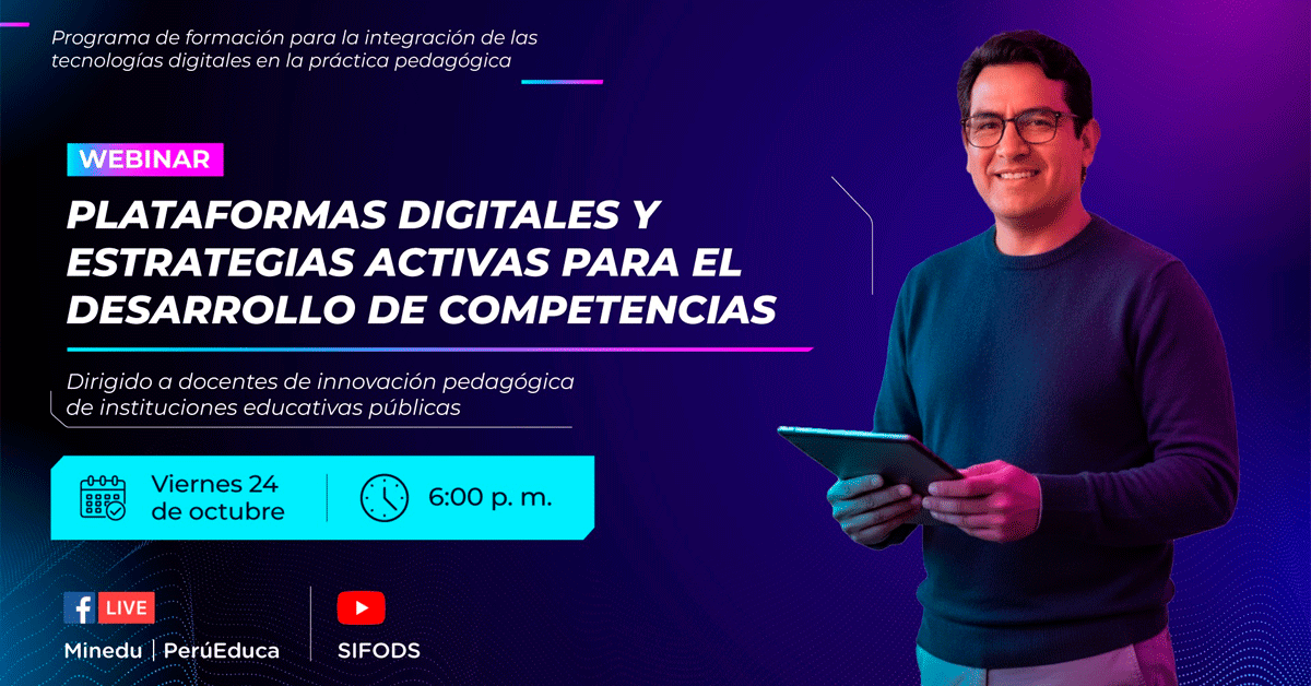 Webinar virtual gratuito: "Plataformas digitales y estrategias activas para el desarrollo de competencias" de MINEDU
