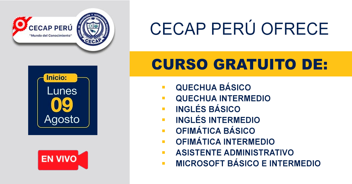 » CECAP PERÚ te presenta el CURSO DE OFIMÁTICA NIVEL BÁSICO será una experiencia única de poder aprender a dominar el WORD + EXCEL + POWEPOINT te enseñaremos desde cero.