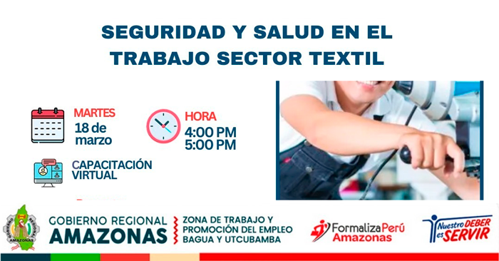 Capacitación virtual "Seguridad y salud en el trabajo sector textil" Zona de Trabajo y Promoción del Empleo Bagua y Utcubamba