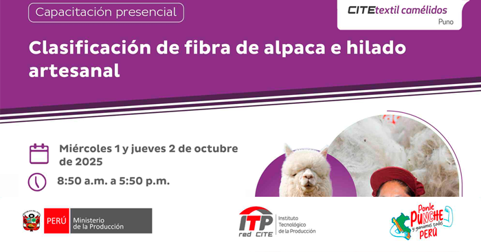 Esta capacitación te proporcionará las herramientas necesarias para clasificar correctamente la fibra y aprender los secretos del hilado artesanal. Ideal para artesanos, emprendedores y amantes de la moda sostenible.