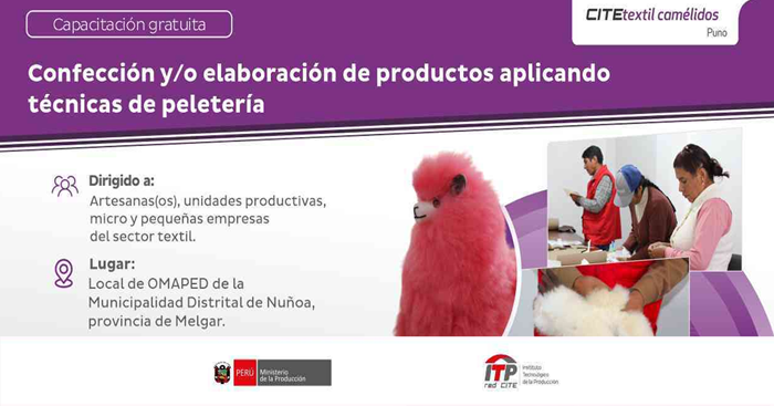 Dirigido a: Artesanas(os), unidades productivas, micro y pequeñas empresas del sector textil.
