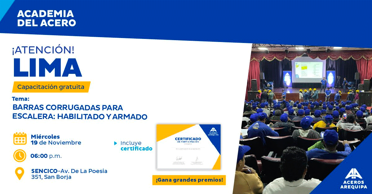 Capacitación presencial gratuito: "Barras corrugadas para el armado de escaleras: Habilitado y armado" de Aceros Arequipa