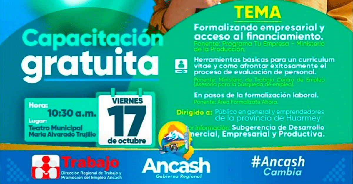Dirigido a: Público en general y emprendedores de la provincia de Huarmey.