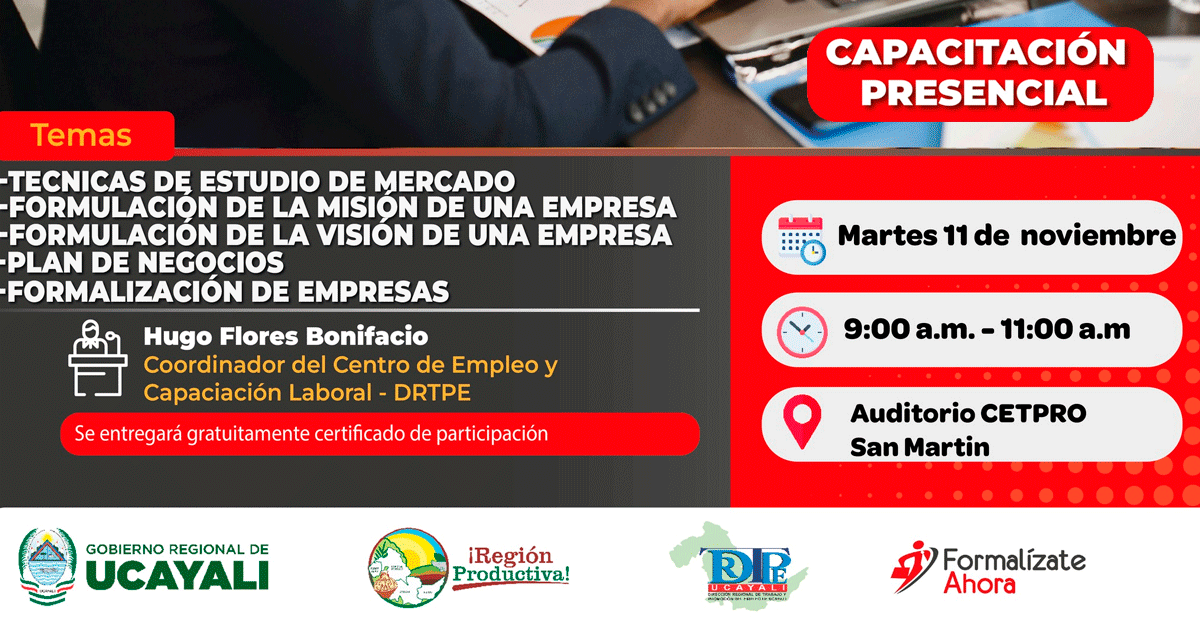 Capacitación virtual gratuita: "Jornada de capacitación" de la DRTPE Ucayali