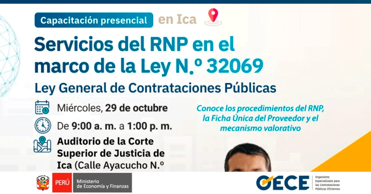 Capacitación presencial gratuito: "Servicios del RNP en el marco de la Ley General de Contrataciones Públicas – Ley N.° 32069" del OECE
