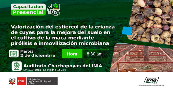 Capacitación presencial: "Valoración de estiércol de crianza de cuyes para la mejora del suelo en el cultivo de la maca mediante pirólisis"