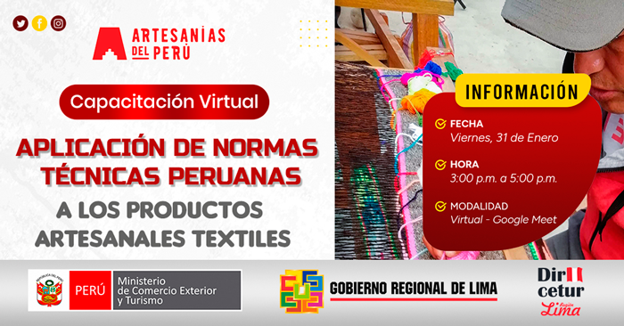 Organizado por: La Dirección General de Artesanía (DGA) del Ministerio de Comercio Exterior y Turismo, en coordinación con el área de Artesanía de la Dirección Regional de Comercio Exterior y Turismo
