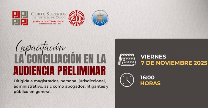 Capacitación virtual "La conciliación en la audiencia preliminar” de la Corte Superior de Justicia de Cusco