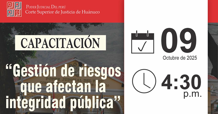 Capacitación virtual "Gestión de riesgos que afectan la integridad pública” de la Corte Superior de Justicia de Huánuco