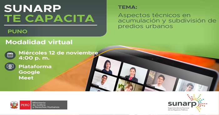 Capacitación virtual gratuita "Aspectos técnicos en acumulación y subdivisión de predios urbanos" de la SUNARP