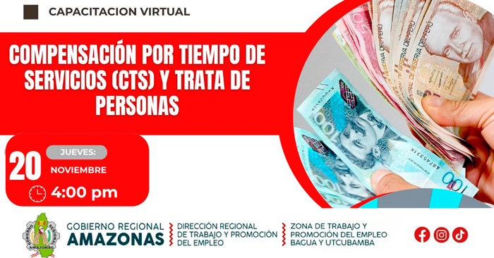 Capacitación virtual gratuita sobre "Compensación por Tiempo de Servicios (CTS) y Trata de Personas" de la DRTPE Amazonas