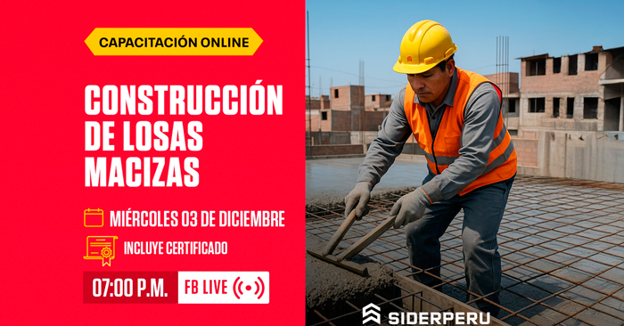 Capacitación virtual gratuito "Construcción de losas macizas" de SIDERPERU. Incluye certificado
