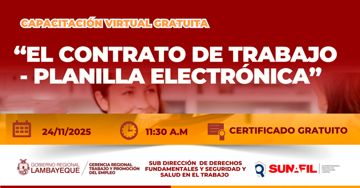 Capacitación virtual gratuita "El Contrato de Trabajo - Planilla Electrónica" de la GRTPE Lambayeque
