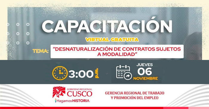 Capacitación virtual gratuita sobre "Desnaturalización de contratos sujetos a modalidad" de la GRTPE Cusco