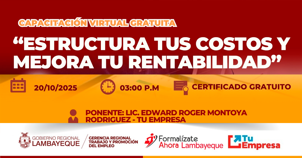 Capacitación virtual gratuita "Estructura tus costos y mejora tu rentabilidad" de la GRTPE Lambayeque