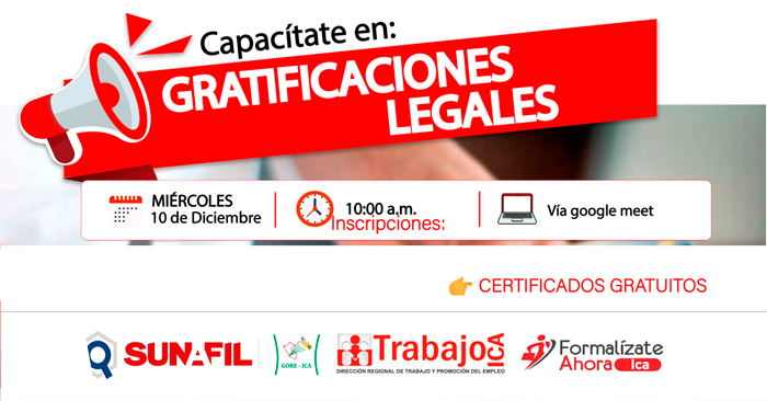 Esta capacitación permitirá resolver dudas frecuentes y conocer de manera práctica las disposiciones relacionadas con el pago de la gratificación por Fiestas Patrias y Navidad, beneficios adicionales, aportes y sanciones por incumplimiento.