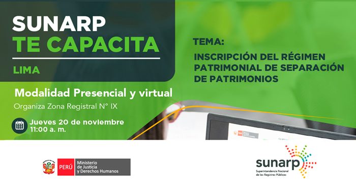 Capacitación virtual gratuita "Inscripción del régimen patrimonial de separación de patrimonios" de la SUNARP