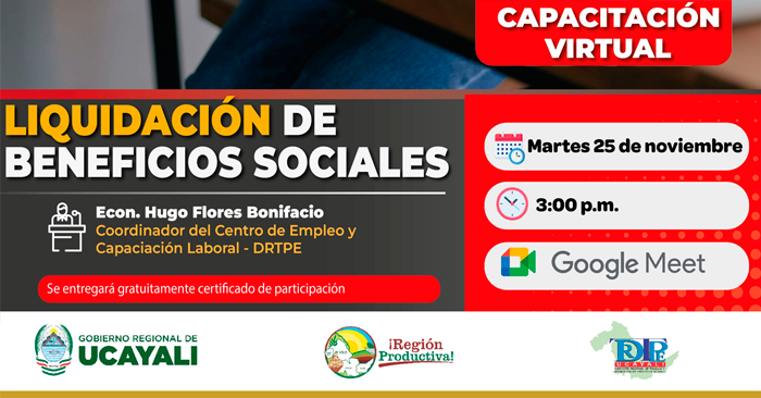 Capacitación virtual gratuita: "Liquidación de beneficios sociales" de la DRTPE Ucayali
