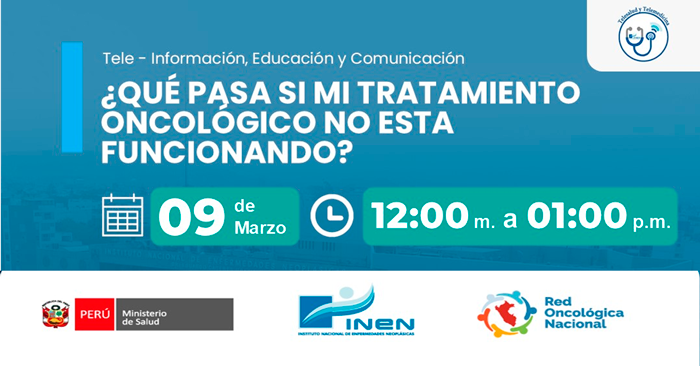 El INEN ofrece Capacitación virtual sobre “¿Qué pasa si mi tratamiento oncológico no está funcionando?”