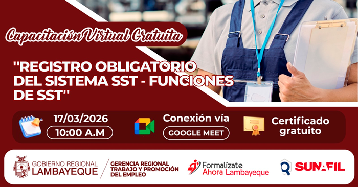 Organizado por: Gerencia Regional de Trabajo y Promoción del Empleo (GRTPE), a través del Centro Integrado Formaliza Perú (CIFA), en coordinación con la Superintendencia Nacional de Fiscalización Laboral (SUNAFIL).