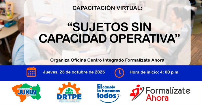Capacitación virtual gratuita "Sujetos sin capacidad operativa" de la DRTPE Junín