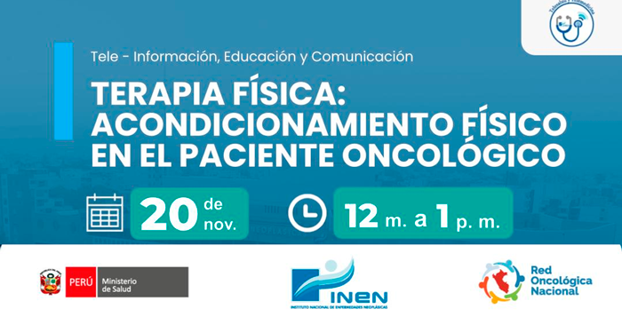 El INEN ofrece Capacitación virtual sobre “Terapia Física: Acondicionamiento fí­sico en el paciente oncológico”