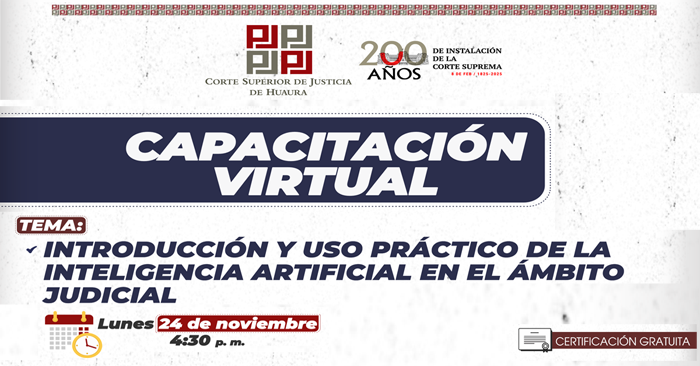 Capacitación virtual "Introducción y uso práctico de la inteligencia artificial en el ámbito judicial" de la Corte Superior de Justicia de Huaura