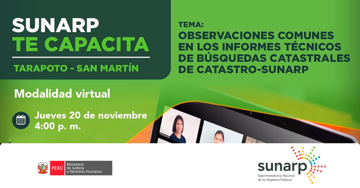 Capacitación virtual gratuita "Observaciones comunes en los informes técnicos de Búsquedas catastrales de Catastro-SUNARP"