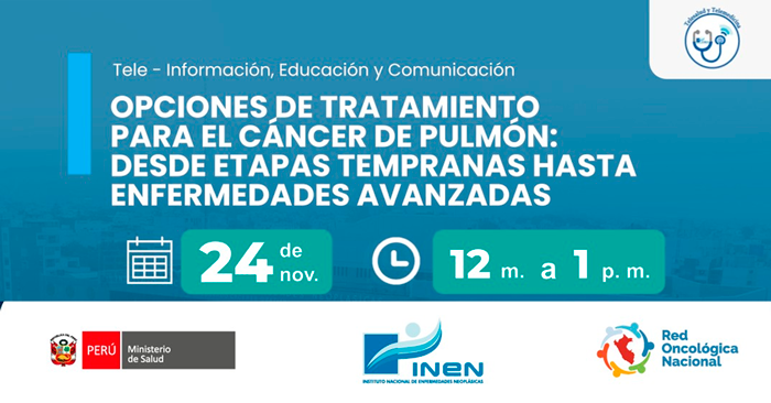 El INEN ofrece Capacitación virtual sobre “Opciones de tratamiento para el cáncer de pulmón: desde etapas tempranas hasta enfermedad avanzada.”