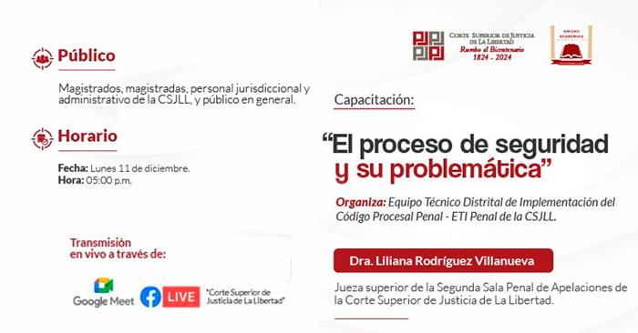 Dirigido a: Magistrados, magistradas, personal jurisdiccional y administrativo de la CSJLL. y público en general.