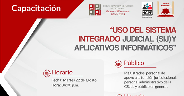 Público Objetivo: Dirigido a magistrados, personal de apoyo a la función jurisdiccional, personal administrativo de la CSJLL y público en general.