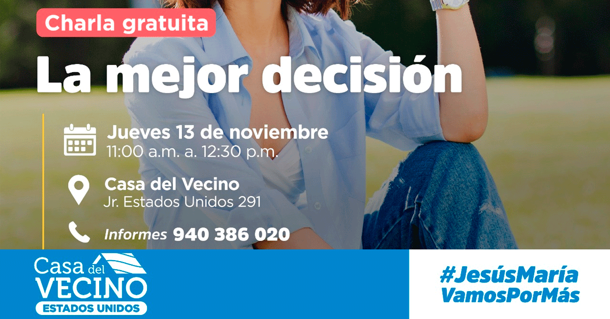 Charla presencial gratuito: "La mejor decisión" de la Municipalidad de Jesús María