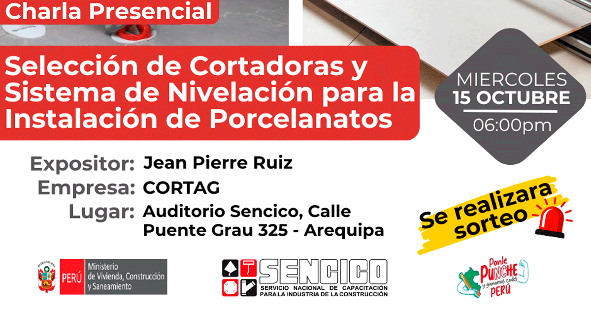 Charla presencial gratuito: "Selección de Cortadoras y Sistema de Nivelación para la Instalación de Porcelanatos" del SENCICO