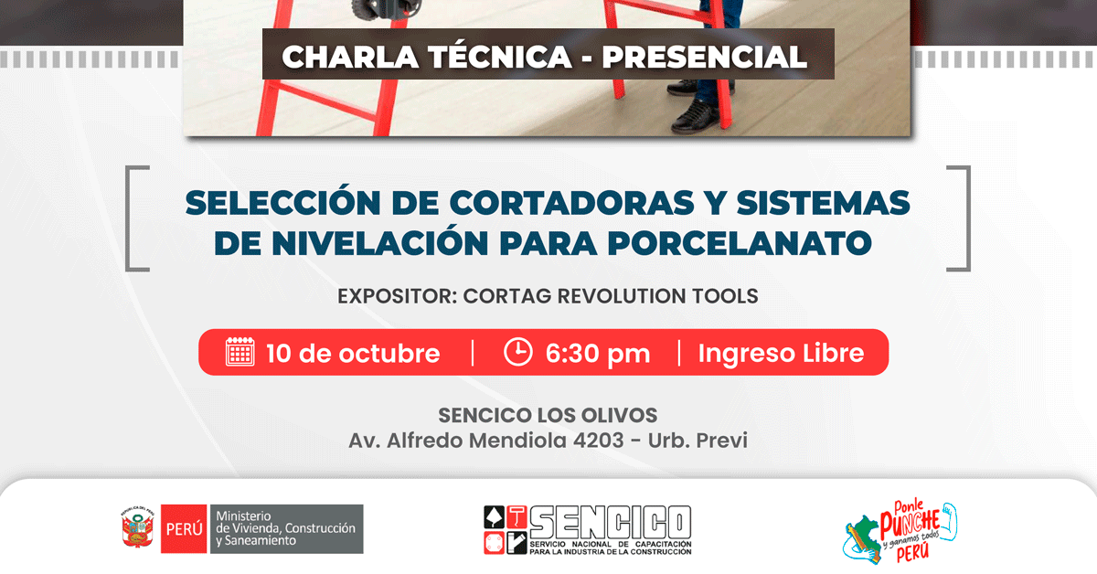 Charla presencial gratuito: "Selección de cortadoras y sistemas de nivelación para porcelanato" del SENCICO