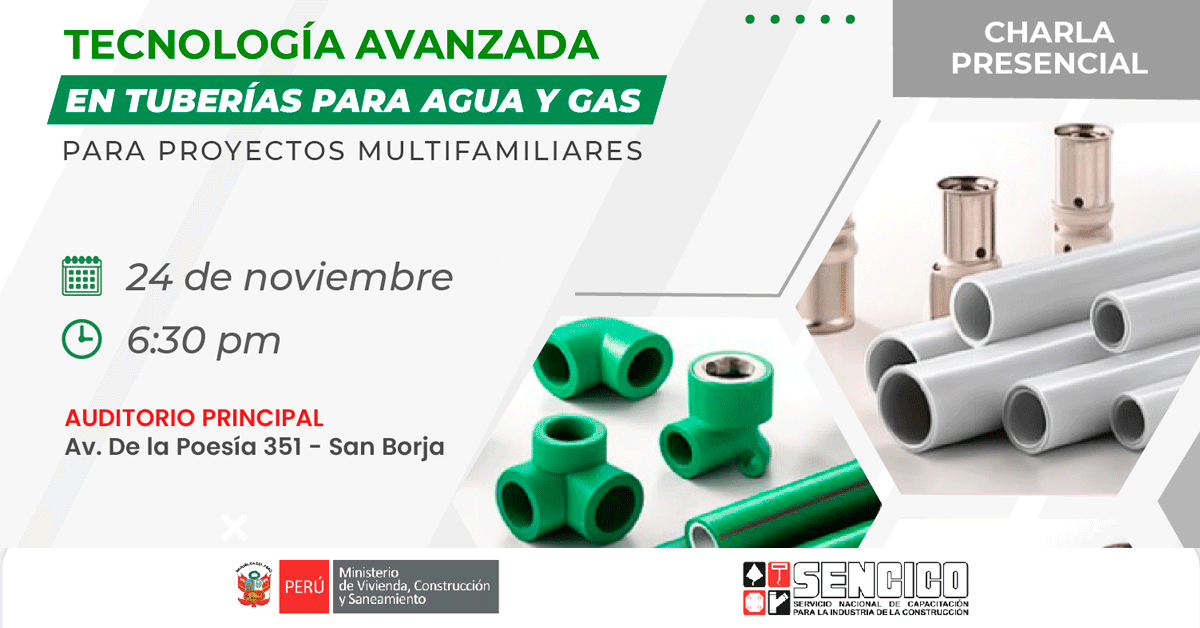 Charla presencial gratuito "Tecnología avanzada en tuberías para agua y gas para proyectos multifamiliares" del SENCICO