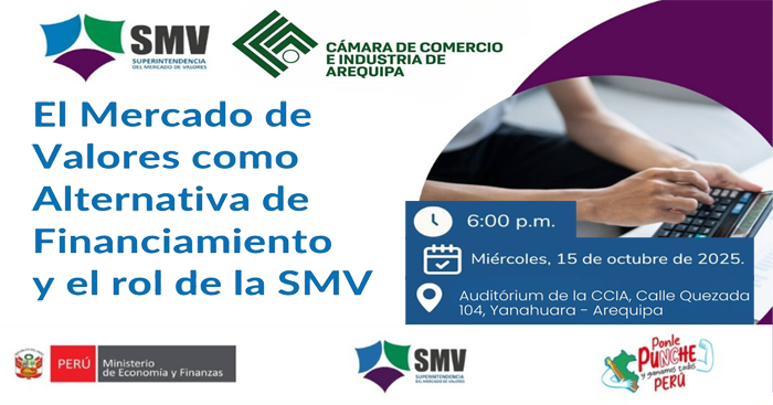 Charla presencial "El Mercado de Valores como Alternativa de Financiamiento y el rol de la SMV" de la Cámara de Comercio e Industria de Arequipa