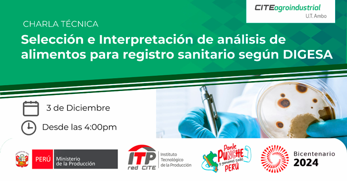 Charla presencial "Selección e interpretación de análisis de alimentos para registro sanitario según DIGESA" CITEagroindustrial UT Ambo