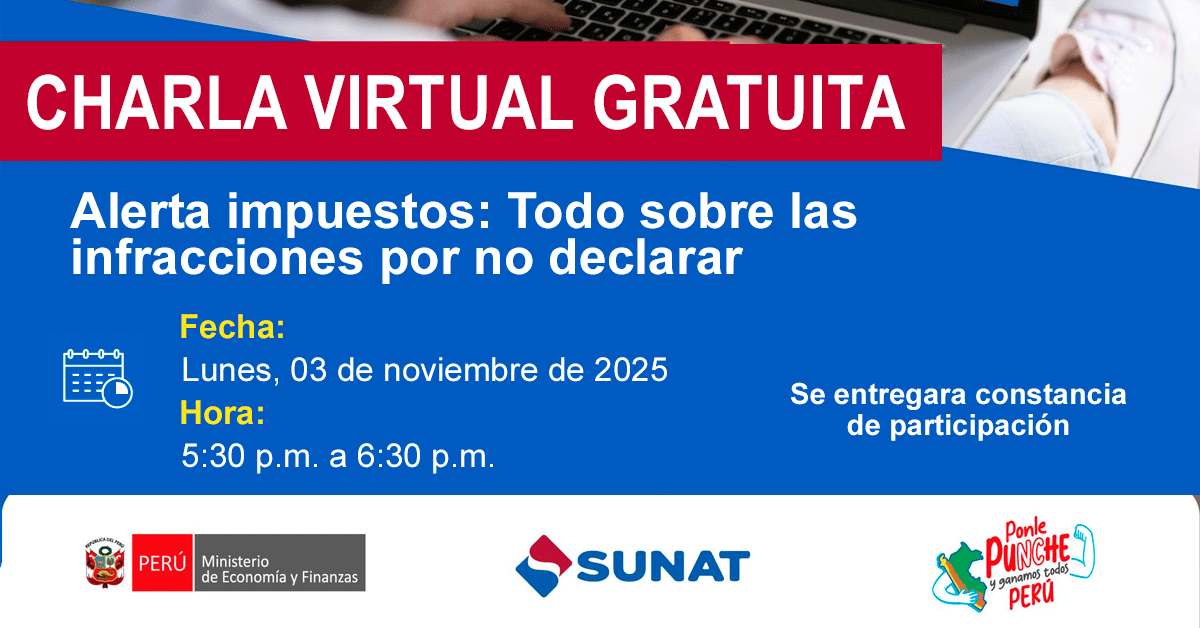 Charla virtual gratuita "Alerta impuestos: Todo sobre las infracciones por no declarar" de la SUNAT