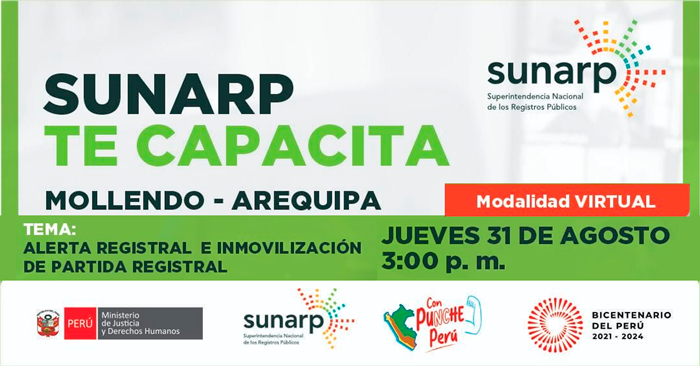 Charla virtual gratuita "Alerta registral y la inmovilización de partida registral" de la SUNARP