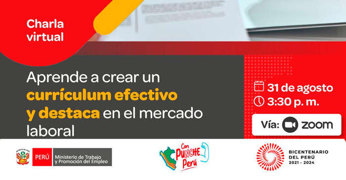Charla virtual gratuita "Aprende a crear un currículum efectivo y destaca en el mercado laboral" del MTPE
