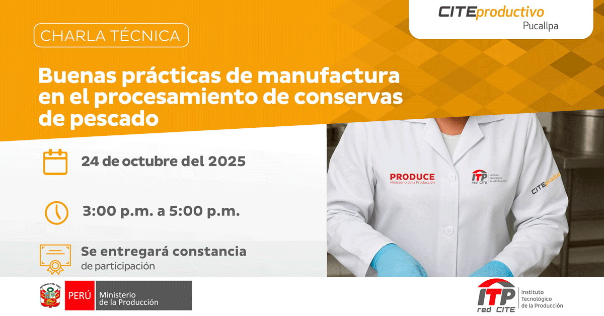 Charla virtual gratuito: "Buenas prácticas de manufactura en el procesamiento de conservas de pescado" del CITEproductivo Pucallpa