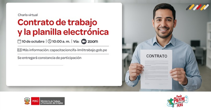 Charla virtual gratuita: "Contrato de trabajo y la planilla electrónica" del Ministerio de Trabajo y Promoción del Empleo del Perú