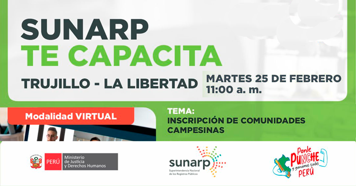 Charla virtual gratuito "Inscripción de comunidades campesinas" de la SUNARP