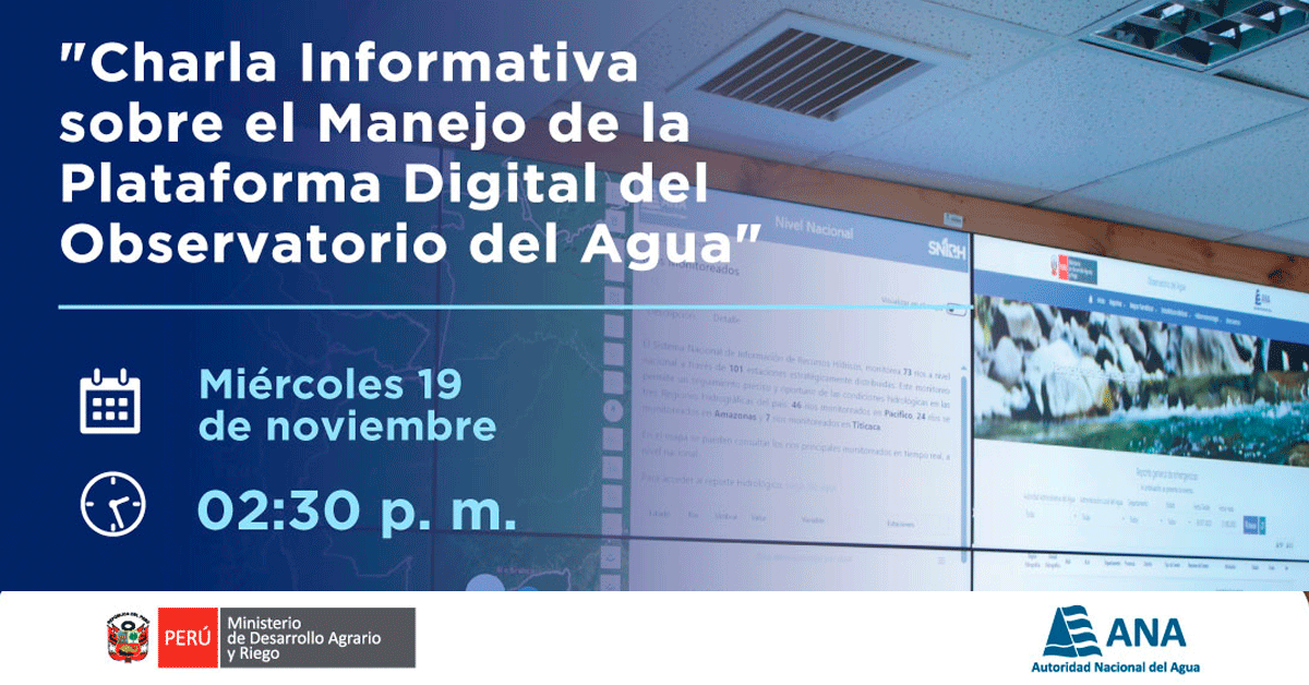 Charla virtual gratuito: "Manejo de la plataforma digital: Observatorio del Agua" De la Autoridad Nacional del Agua