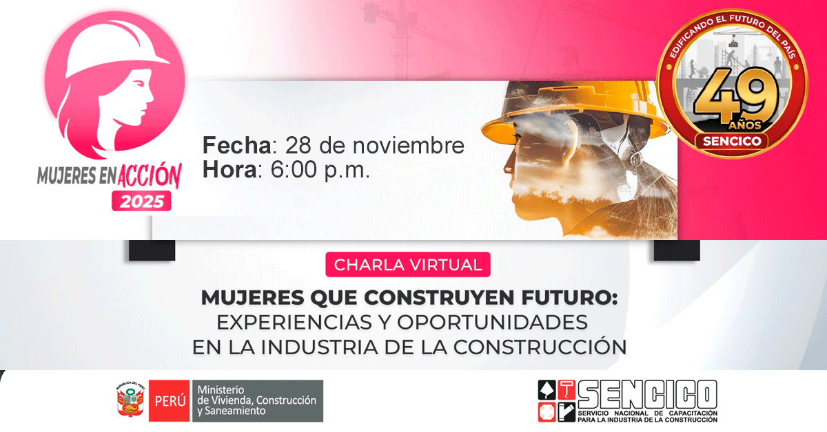 Charla virtual gratuito "Mujeres que construyen futuro: experiencias y oportunidades en la industria de la construcción" del SENCICO